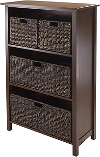 Winsome Wood Milan Wood 4 Tier Open Cabinet in Antique Walnut Finish and 5 Rattan Baskets; 1 Large and 4 Small in Espresso Finish 141[並行輸入]
