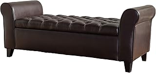 Christopher Knight Home Living Stafford Brown Leather Armed Storage Bench, 19.5”D x 50.00”W x 19.25”H 141[並行輸入]