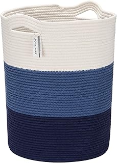 Sea Team 収納バスケット 収納かご 収納ボックス ロープバスケット 持ち手付き ランドリー ナチュラル 赤ちゃん 子供 イエロー グレー ピンク おもちゃ入れ 収納かごインテリア 58L大容量(ネイビー 60*41*41CM )