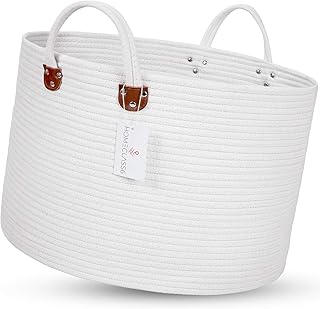 XXL 織物ランドリーバスケット - 20 x 20 x 13.3インチ コットンロープバスケット。ブランケット、おもちゃ、スロー、枕用の織物収納バスケット。ロープランドリーバスケットとハンドル付き収納バスケット。オフホワイト