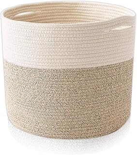 Tegance 蓋付き編みロープバスケット コットンロープバスケット 整理用 大型ランドリーバスケットバスケット リビングルームバスケット ブランケット 保育園用 多目的収納バスケット 奥行16インチ x 高さ14インチ