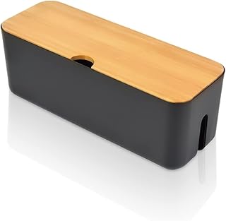 Baskiss 竹製電源タップ & ケーブルボックス テーブルタップ収納ボックス 配線整理 コード収納