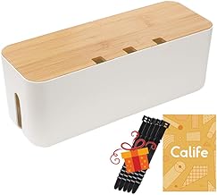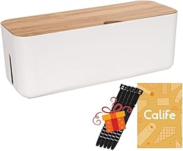 Calife 北欧インテリア 大容量 Lサイズ 電源タップ & ケーブルボックス 5本シリコン製結束バンド付属 コンセント収納ボックス 配線隠し コード隠しボックス テーブルタップ収納ボックス 竹&樹脂製 白/ホワイト