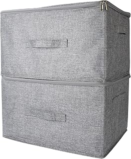 2個セット収納バスケット 収納ボックス 収納かご リネン素材 洗濯かご 衣類 毛布 タオル 小物入れ収納 バスケット おもちゃ収納 取っ手付き折り畳み式 裏地付き 約幅40×奥行25×高さ28㎝ グレー長方形