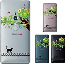Xperia XZ2 (docomo SO-03K / au SOV37 / SoftBank 702SO) 兼用 《純正 卓上ホルダ 対応(別売)》 カバー ケース ネコと樹木 蝶 クリアデザイン エクスペリアXZ2 スマホケース スマホカバー ドコモ ソフトバンク