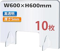 Aurako 【10枚セット】透明 パーテーション W800×H600mm 厚さ5mm 180×160mmの特大足付き板 角丸加工 衝突防止 アクリル板 組み立てやすいタイプ飛沫防止デスクパーテーション 仕切り板 ウイルス対策 衝立 飲食店 お店 オフィス 学校 病院薬局