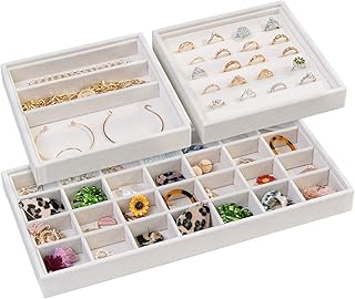 Mebbay ベルベット 積み重ね可能 ジュエリートレイ オーガナイザー 引き出し用ジュエリーディスプレイオーガナイザー スタッドイヤリングネックレス ブレスレット リングストレージトレイ 3個セット (ホワイト)