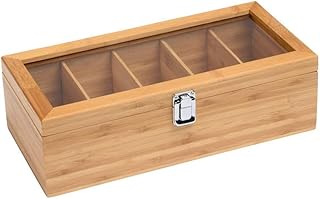 Luka 5グリッド 竹製 ティーバッグ収納ボックス ホルダー 収納ケース クリアなふた付き