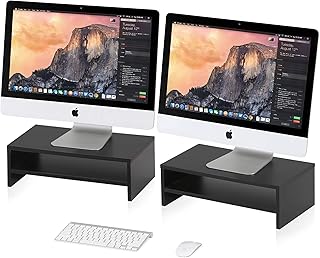 FITUEYES 机上台 2セット 机上ラック 木製 2段 モニター台 幅425mm 机上収納 ブラックDT204202WB