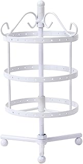 3層 回転式 72ホール ピアスホルダー ネックレスオーガナイザー ジュエリースタンド アクセサリー収納 - 白, 11x24cm