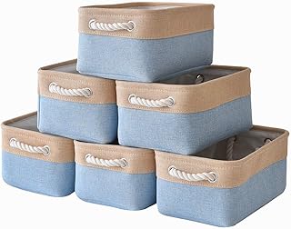 pulnimus ファブリックストレージバスケットセット [6パック] 布バスケット 子供部屋バスケット 小さなストレージビン ロープハンドル付き空のギフトバスケット 長方形バスケット 装飾クローゼットバスケット DY6GHE