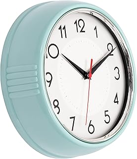 Lumuasky レトロ壁掛け時計 9.5インチ キッチン ヴィンテージデザイン ラウンド サイレント カチッと音が出ない 電池式 高品質 クォーツ時計 (ライトブルー)