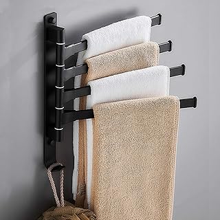 バスルーム用タオルラック 防錆 回転タオルバー 壁取り付け 14.5インチ 折りたたみアーム ハンドタオルラック 接着剤または壁取り付け ネジ付き バスルーム スイングアウトタオルシェルフ(4アームブラック)