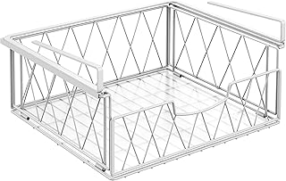 Bextsrack 棚下バスケット 1パック スライディングワイヤーラック プラスチックパッド付き 吊り下げ収納バスケット キャビネット下オーガナイザー キッチン パントリー デスク 本棚用 ホワイト
