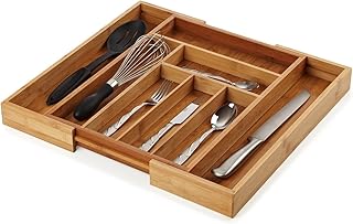 Organic Bamboo Extendable Drawer, Heim Concept Expandable and Extendable 6 - 8 Slots Organizer Cutlery Tray Layout for Utensils Utility Accessories Storage by Heim Concept