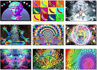 9 XファブリックポスターPsychedelic TrippyカラフルTrippy Surreal抽象Astralデジタル壁アートプリント 20x13 inch (50x33cm) 9xPcs-T-E615(1-9)