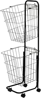 [イロネット] ironet ランドリーバスケット スクエアタイプ 2段 80L キャスター付き スチール ランドリー ワゴン 洗濯かご おしゃれ (ブラック)