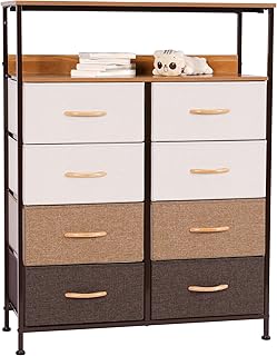 LYNCOHOME 棚付き収納チェスト タンス ラック キャビネット 布製引き出し 衣類収納 リビング収納 低ホルム 4段8杯【幅80×奥行29×高さ103cm】